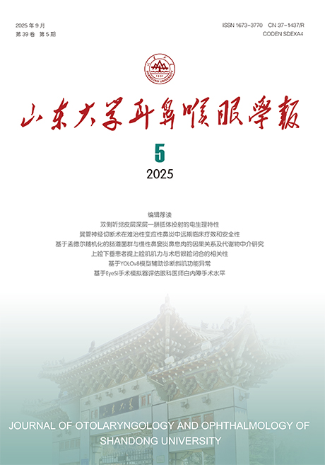 Supervised by: Ministry of Education of the People's Republic of China Sponsored by: Shandong University Co-Sponsored by: NHC Key Laboratory of Otorhinolaryngology Editor in Chief: PAN Xinliang Editing and Publishing: Shandong University Scientific Journals Press Postcode:24-43